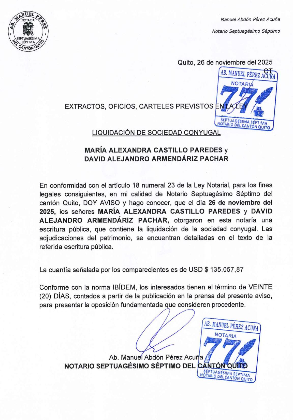 Distrito Metropolitano de Quito, 27 de noviembre de 2025