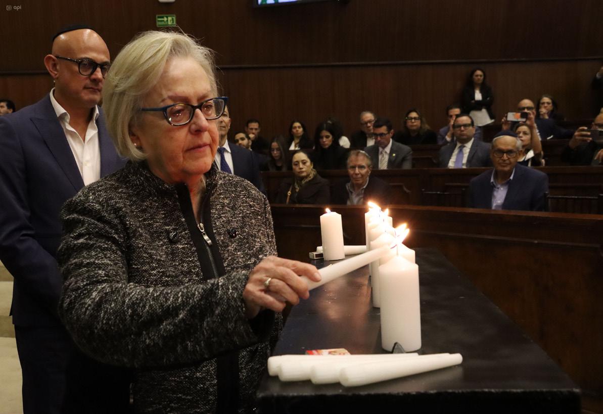 En un acto simbólico, el presidente de la Comunidad Judía del Ecuador, Andrés Ehrenfeld, acompañó a sobrevivientes y descendientes de las víctimas a encender velas en su memoria.