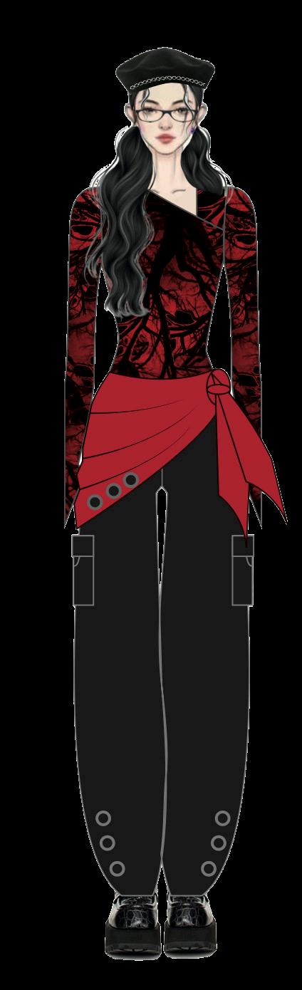 Alejandra Espinoza, Finalista del concurso Quito Diseña y participante de La Universidad Técnica de Ambato, Alejandra es una creadora que reinterpreta la estética streetwear con un concepto interesante que integra la idea de rebeldía y colectividad. Su identidad se define por la autenticidad, el impacto visual y la autoexpresión.