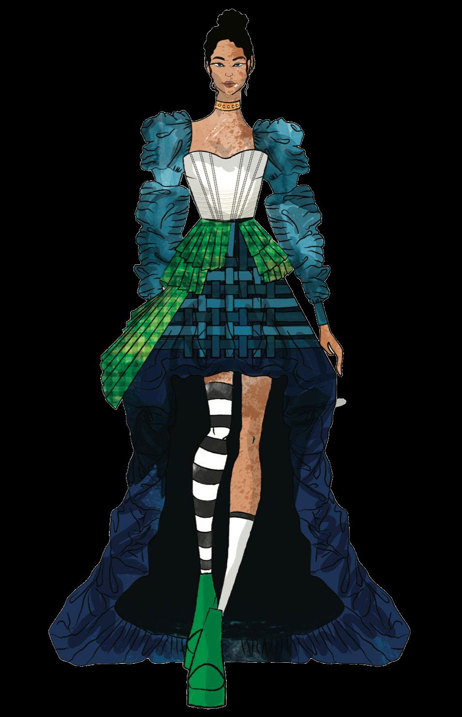 Antonia Recalde, Finalista del concurso Quito Diseña y participante de La Fábrica de Moda, Antonia es una creadora que entiende la moda como un acto de rebeldía y expresión. Su trabajo fusiona referencias históricas con una estética punk y arquitectónica, explorando identidad, contraste y provocación en cada pieza.