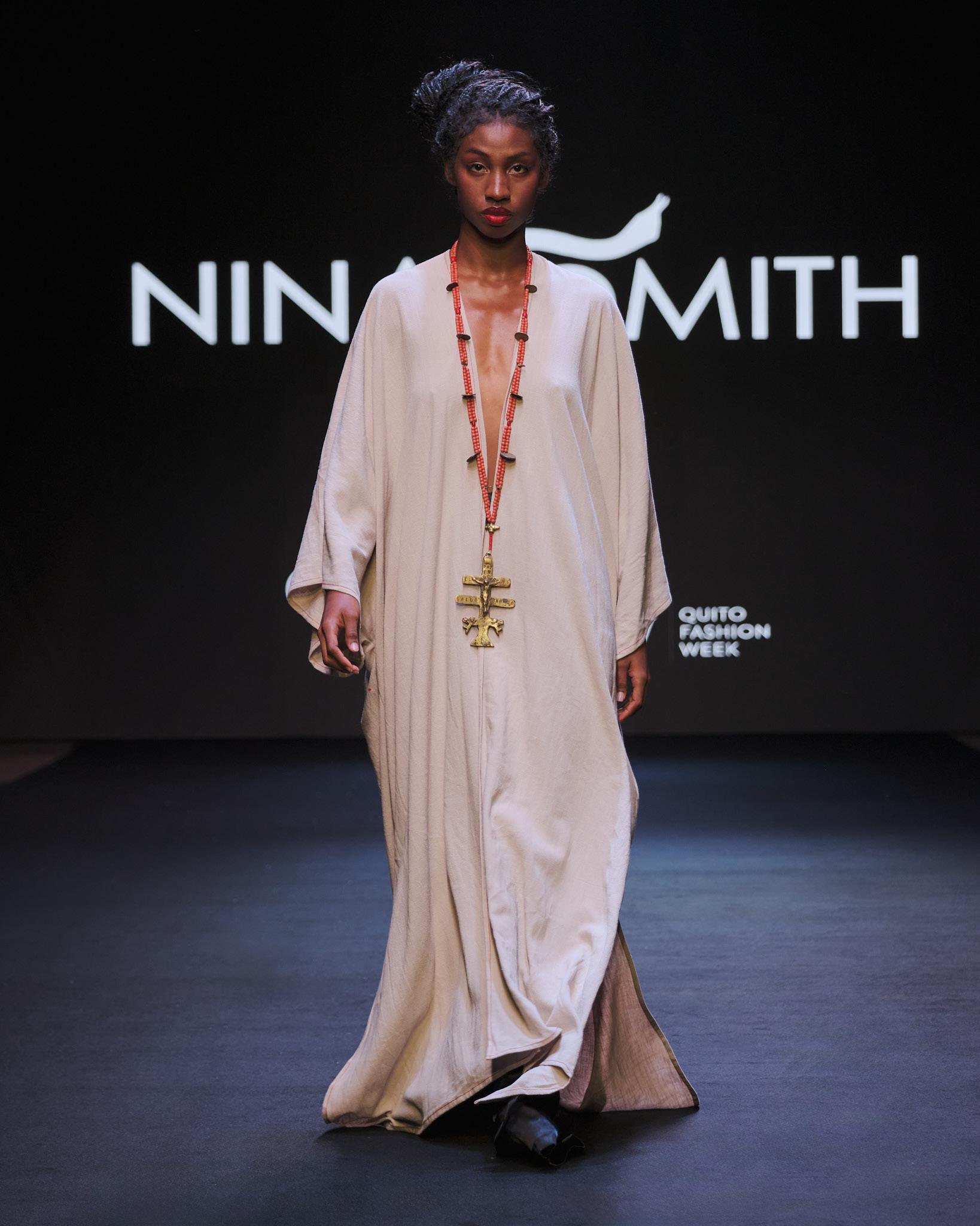 Su colección rinde homenaje a la mujer cimarrona, símbolo de resistencia y liderazgo. La bisutería de tagua, transformada por artesanas de Esmeraldas, narra historias de memoria, cultura y conexión con la tierra. Cada pieza celebra la identidad afroecuatoriana y ofrece un lujo con raíces, donde historia, naturaleza y creatividad se encuentran.