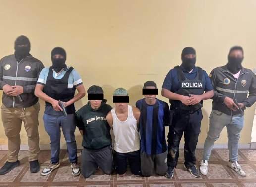 La Policía Nacional hizo un barrido de cámaras de seguridad y se movilizó hasta el barrio Virgen del Cisne para aprehender a tres antisociales: Deivi M., 21 años; Steven M., 18; y José M., 24; quien registra antecedentes penales.