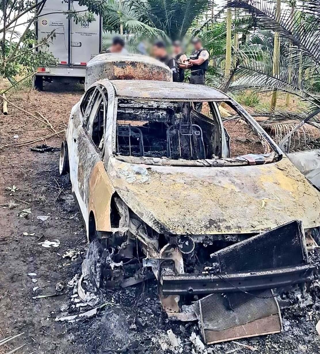 Dos hombres fueron asesinados y posteriormente incinerados en el interior de un vehículo, aparentemente taxi, que fue abandonado en la zona rural de Santo Domingo de los Tsáchilas. El atroz hallazgo ocurrió la tarde de ayer, lunes 4 de agosto, cerca a una hacienda ubicada en el camino que conecta a la parroquia rural Plan Piloto y el recinto Umpechico.