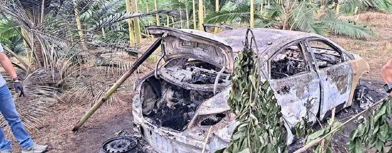 El auto fue abandonado e incendiado en una zona rural de Santo