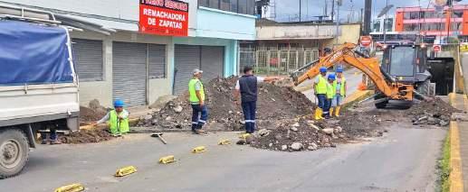 debido al hundimiento generado por el deterioro de una tubería antigua que no fue reemplazada durante la ejecución del proyecto vial. Con las lluvias se producen inundaciones. Ante esta situación, personal de la empresa pública municipal de Agua Potable y Alcantarillado (Epmapa) acudió para comenzar la reparación, lo que obligó la interrupción del tránsito vehicular.
