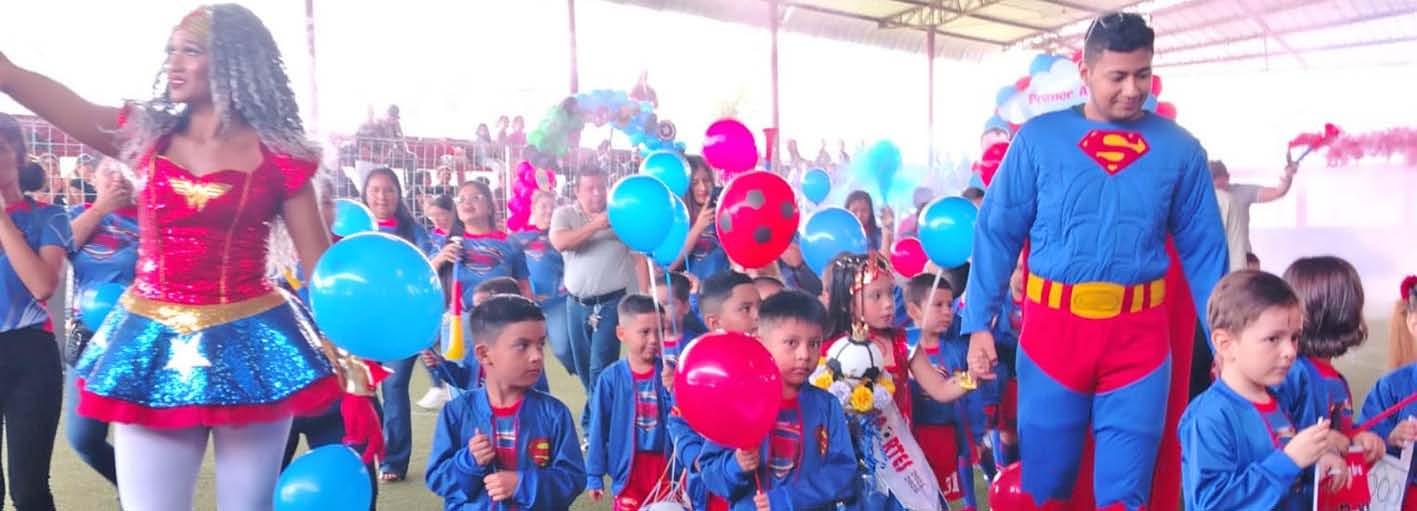 La presencia de superhéroes destacó durante la inauguración del campeonato interno de la unidad educativa 17 de Diciembre, en Santo Domingo.