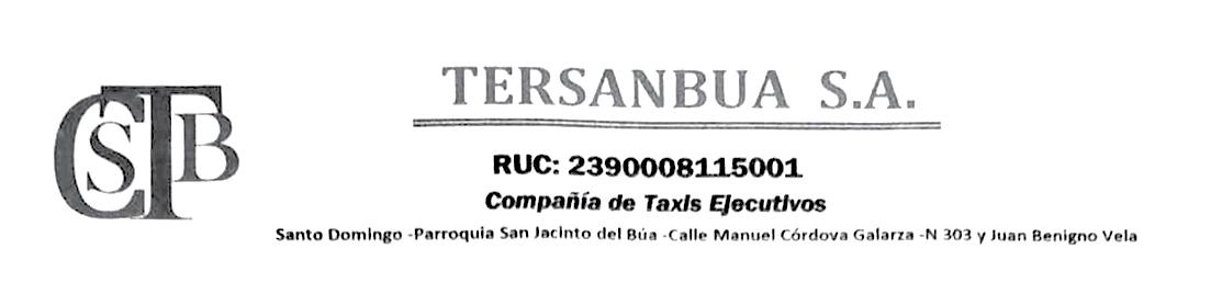 De acuerdo al articulo 236 de la ley de Compañía y Estatutos Sociales de la empresa se convoca a junta general extraordinaria de Accionistas COMPAÑÍA DE TAXIS EJECUTIVOS TERSANBUA S.A. la misma que la celebra el día Martes 23 de Septiembre del 2025 a las 17H00 pm la misma que se realizara en el domicilio de la Compañía ubicado en la Parroquia San Jacinto del Búa, calle principal Manuel Córdova Galarza N 303 y Juan Benigno Vela, con el siguiente orden del día: