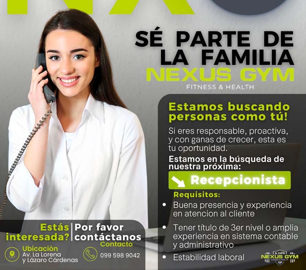 Los interesados acercarse personalmente con su Carpeta, se realizarán pruebas traer ropa cómoda, en horarios de oficia (9:00 a 16:00) en la siguiente dirección: Vía Quevedo km 10.5 frente a Abacá Ecuador.”