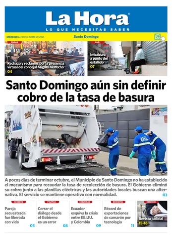 A pocos días de terminar octubre, el Municipio de Santo Domingo no ha establecido el mecanismo para recaudar la tasa de recolección de basura. El Gobierno eliminó su cobro junto a las planillas eléctricas y las autoridades locales buscan una alternativa. El servicio se mantiene operativo con normalidad. 03