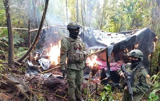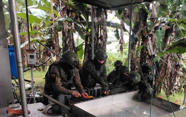 mantelamiento de un mega laboratorio de minería ilegal y una base guerrillera, como lo reportó LA HORA.