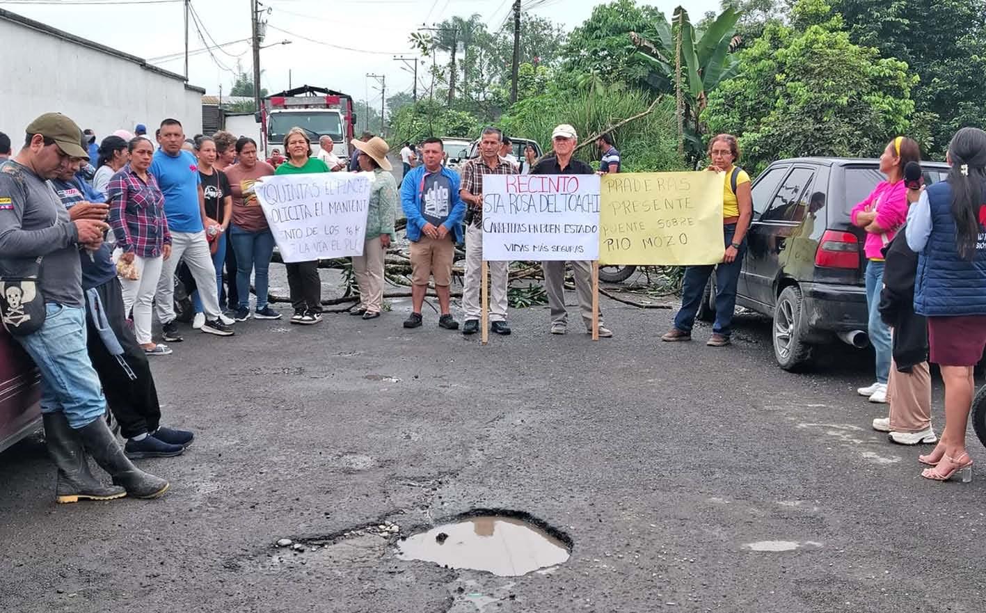 Los moradores de la vía San Antonio – El Placer del Toachi bloquearon el paso y repetirán esta acción si no se aplica el mantenimiento necesario. Aseguran que, en ocasiones, han financiado repuestos de maquinaria, pero, según ellos, los trabajos no se ejecutan de manera correcta. El exceso de baches también provoca el incremento de accidentes en moto, algunos con desenlaces trágicos. 03