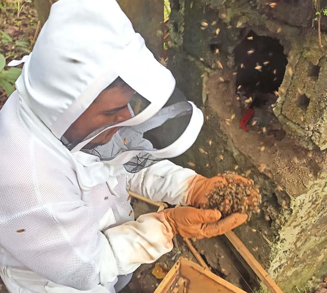 “La apicultura es el manejo técnico de las abejas, preservando la especie y extrayendo miel de forma cuidadosa; representa un ingreso adicional para las familias”, explicó. El