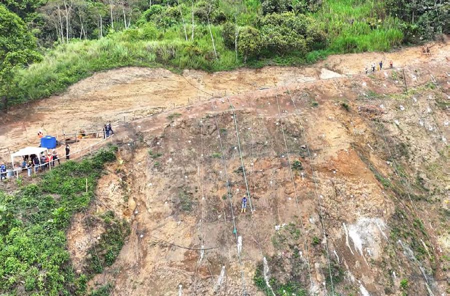 ° Autoridades del Gobierno Provincial supervisaron el avance de los trabajos de estabilización del talud en el km 83 de la vía Alóag-Santo Domingo. Se constató que los 8.000 metros de malla triple torsión recubierta de PVC ya están completamente anclados, formando una cerca de protección. Además, se verificó la funcionalidad de la cuneta de coronación. Se estima que los trabajos concluirán en aproximadamente dos meses. (LMM)