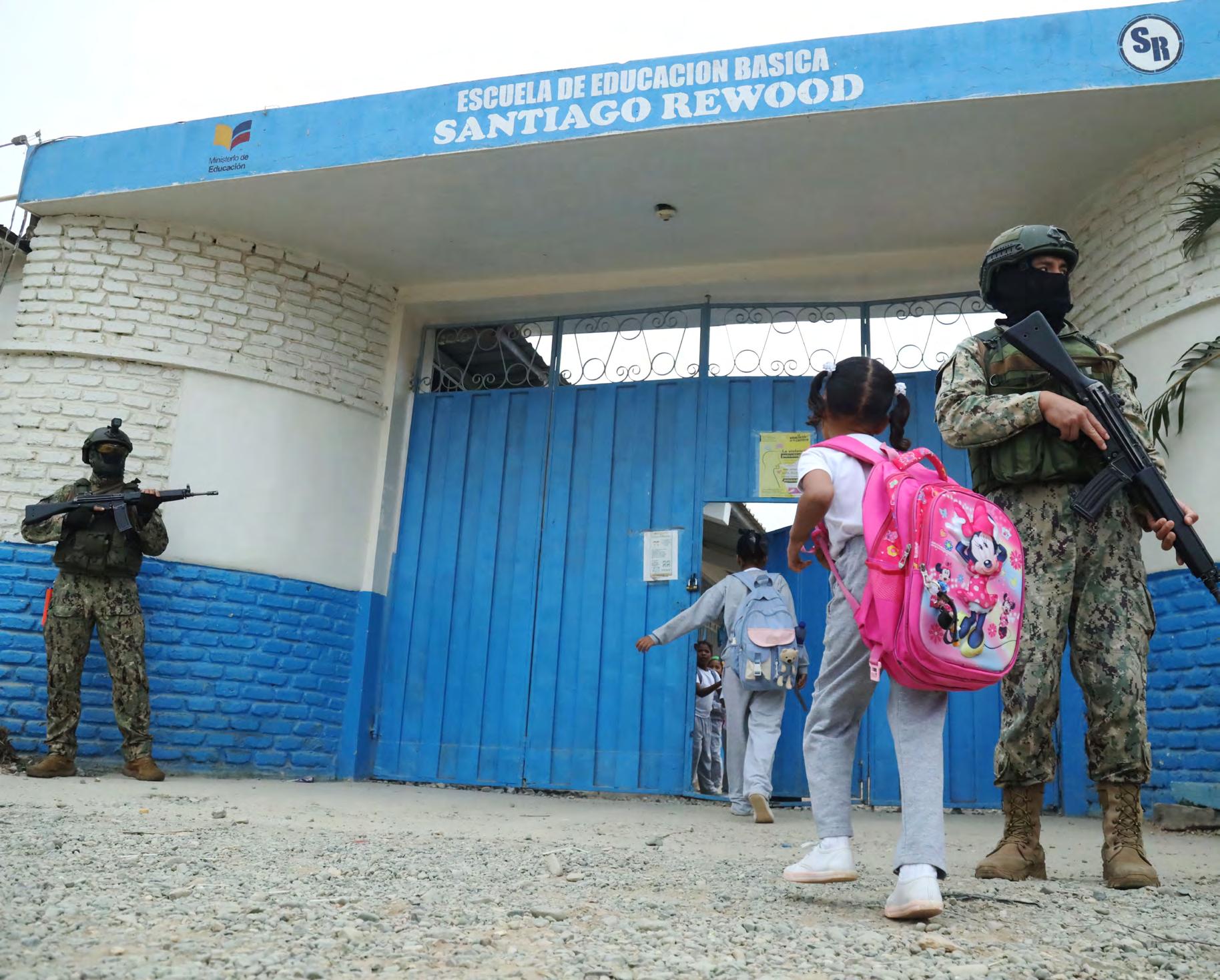 CONTROL. Presencia militar en los exteriores de escuelas en Durán. (Foto: Archivo API)