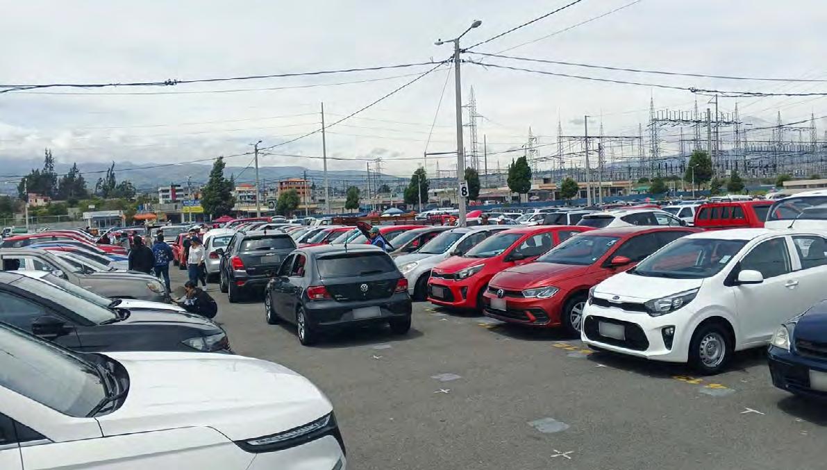 Ya en la explanada donde cada lunes ingresan entre 2 mil 500 y 3 mil vehículos para su comercialización, el caos no es mejor, pues no hay espacios delimitados con exactitud para cada vehículo, inclusive hay quienes aduciendo que pagan los 0,80 centavos que cuesta entrar a la feria, pueden dejar sus vehículos en cualquier lado. En el sitio también hay vendedores ambulantes, sobre todo de comida y jugos, quienes no están en un lugar específico como sí lo están los comerciantes asociados, quienes se encuentran en la parte trasera de la feria con sus carpas y muy cerca de los vendedores de carros.