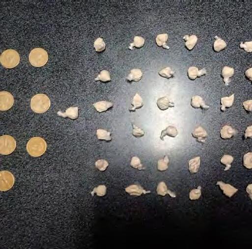 En este caso ambos tenían 49.30 gramos de cocaína, es decir 493 dosis envueltas en fundas plásticas transparentes, además de dinero
