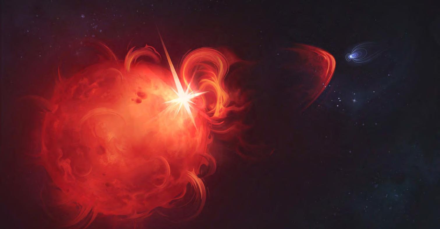 El estallido fue una eyección de masa coronal (EMC), erupciones que se suelen observar provenientes del Sol. Durante una EMC, enormes cantidades de material son expulsadas de nuestra estrella, inundando el espacio circundante. Estas espectaculares expulsiones dan forma e impulsan el clima espacial , como las deslumbrantes auroras que se ven en la Tierra , y pueden erosionar las atmósferas de los planetas cercanos.