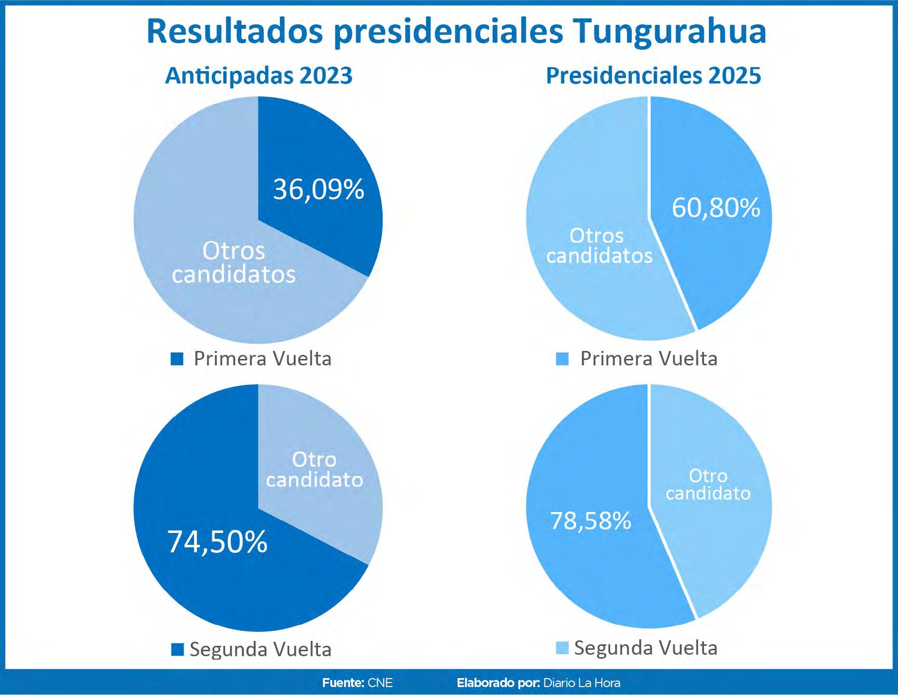 Esta no es la primera vez que Noboa alcanza una victoria contundente dentro de los procesos electorales , pues en las elecciones anticipadas de 2023 ganó en ambas vueltas, para las eleccio-