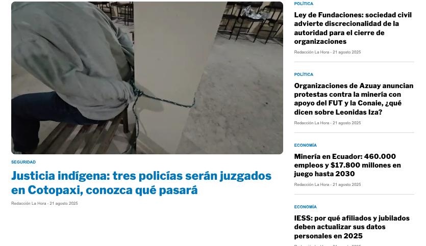 El equipo de periodistas de LA HORA tiene la misión de rescatar y mostrar ejemplos de los ecuatorianos que día a día se esfuerzan para conseguir sus propios objetivos. Estamos en constante búsqueda de personas que, con sus acciones, nos enseñan la honestidad, la responsabilidad, el respeto, la empatía, la humildad, la justicia y la perseverancia.