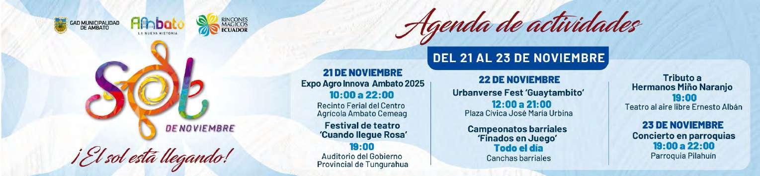 de instituciones como la Universidad Técnica Particular de Loja, Sunset Vacation, All American English y REMAX Imperio, la expoferia invita a los ambateños y visitantes a vivir tres días llenos de tradición y comercio responsable.