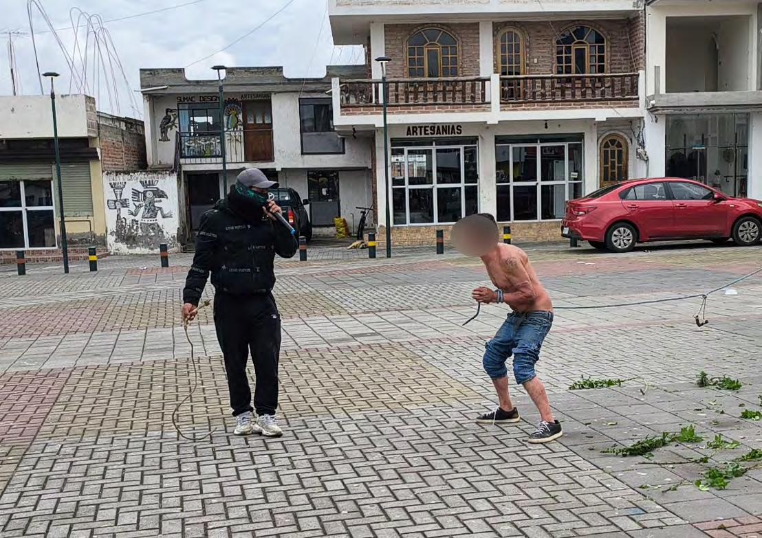 La comunidad se unió para capturarlo y trasladarlo hasta el parque central de Salasaca, el presunto responsable del robo sería de Ambato y tendría 24 años, además,
