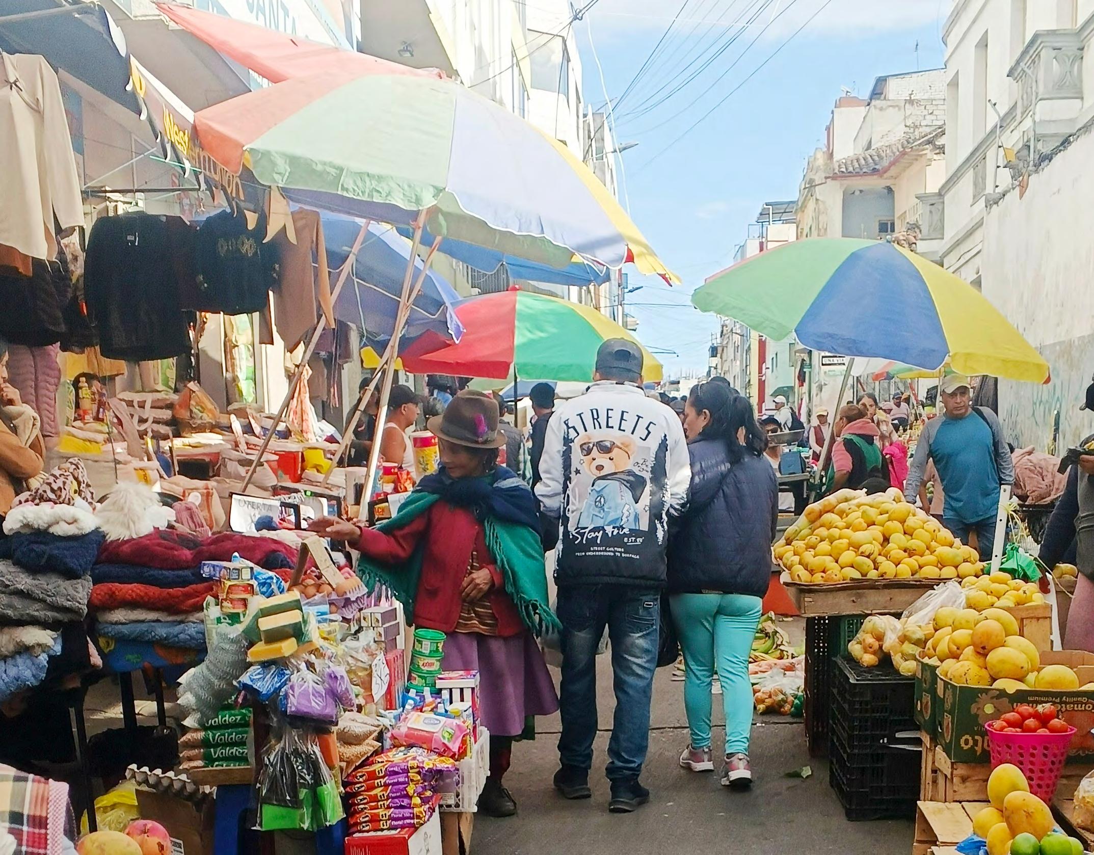Lunes, día de feria en Ambato, y los comerciantes informales se ‘apoderan’ de ciertas calles aledañas a los principales mercados de la ciudad.