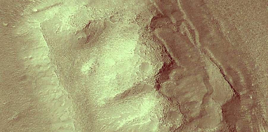 te, con abundantes cráteres, se transforman en las suaves tierras bajas del norte. Muchos lugares de latitudes medias como este también han experimentado actividad glacial, lo que probablemente redujo el tamaño de esta meseta y creó los valles achaparrados alrededor de su nivel más alto. Es probable que las manchas de material liso (especialmente en sus caras este y norte) sean restos de hielo de agua polvoriento. Un par de imágenes estéreo de esta meseta, tomado por HiRISE el 4 de noviembre de 2023, se convirtió en un modelo digital del terreno. Los DTM (Digital Terrain Model) de HiRISE se crean a partir de dos imágenes de la misma zona terrestre, tomadas desde diferentes ángulos y en órbitas distintas. Proporcionan datos valiosos, no solo para investigadores, sino también para visualizar el terreno, según del blog dedicado a esta cámara que opera la