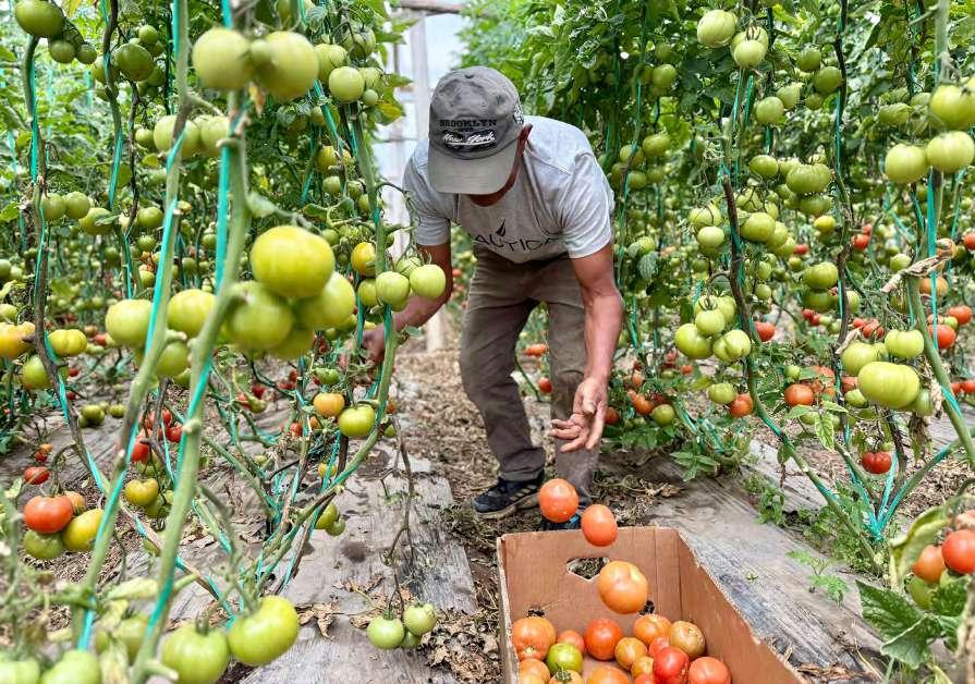 Geovanny Telenchana, agricultor de 54 años, es un hombre amable y carismático que desde muy joven se dedica a la producción de hortalizas. Actualmente trabaja junto a su esposa Narcisa en 10 invernaderos de tomate riñón en la parroquia Cunchibamba. Su jornada inicia a las cinco de la mañana, un café para empezar el día y enseguida las labores en el campo . Por las mañanas cosechan otras hortalizas y, al mediodía, junto a varios vecinos que se suman como trabajadores, recolectan el