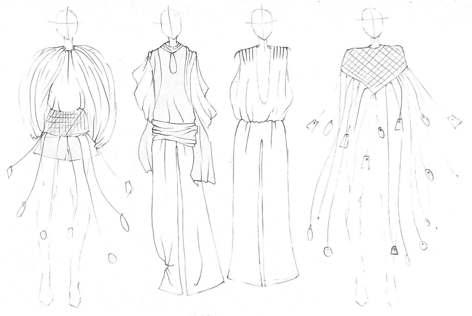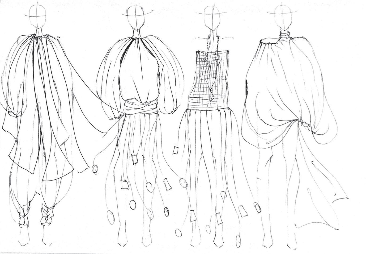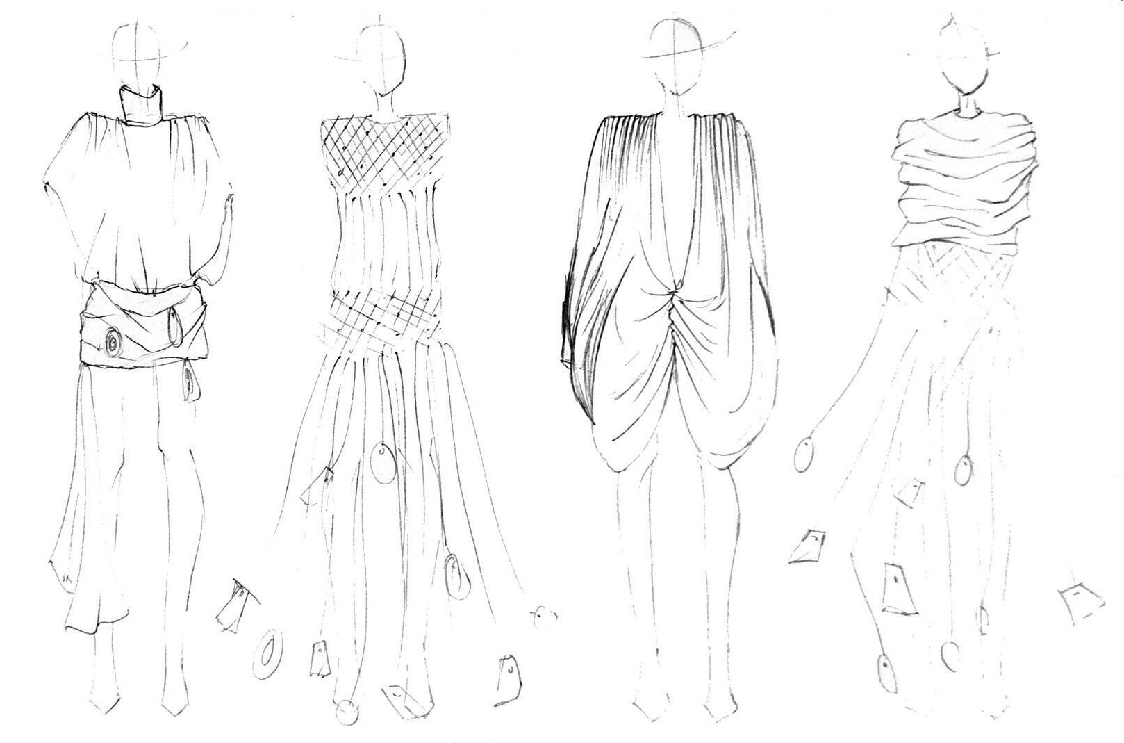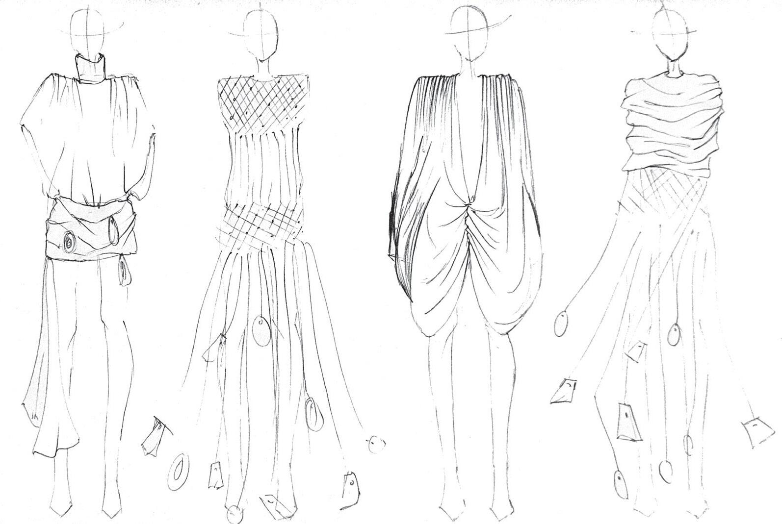 These hand-drawn sketches explore the early stages of the Sarde collection, focusing on silhouette, proportion, and material interaction. Created in pencil, they capture an intuitive and fluid approach to design, allowing ideas to evolve through observation and experimentation.
