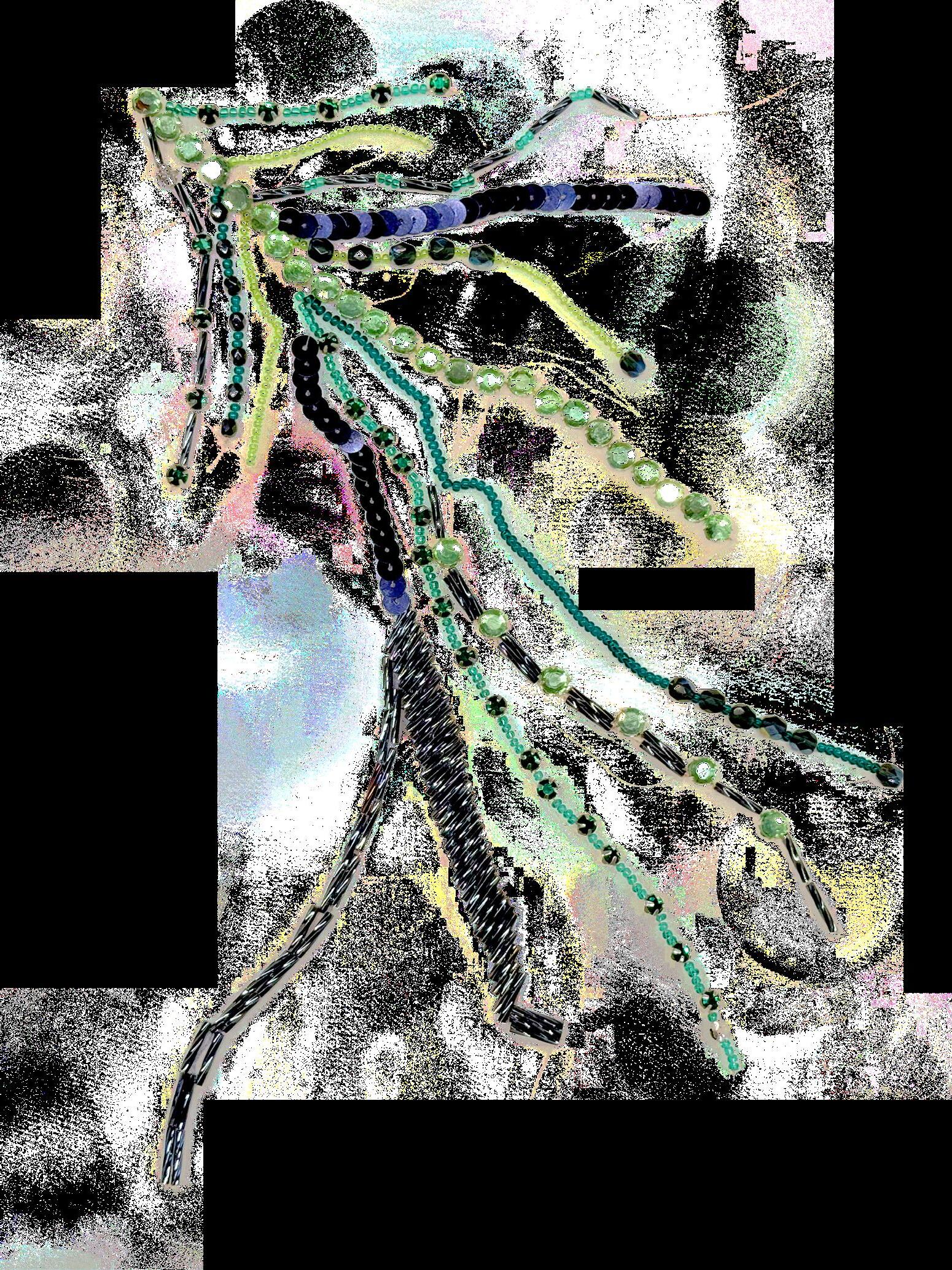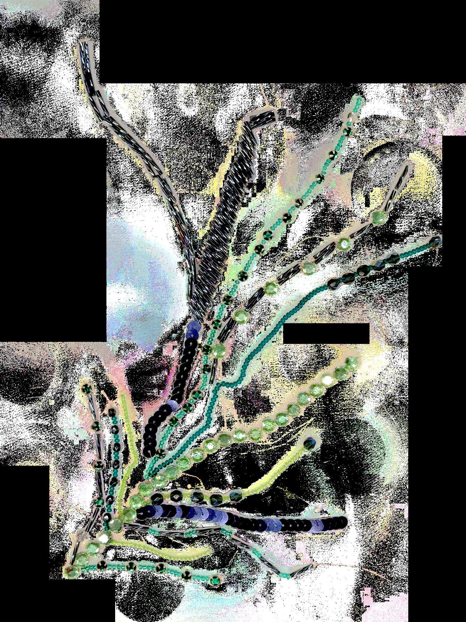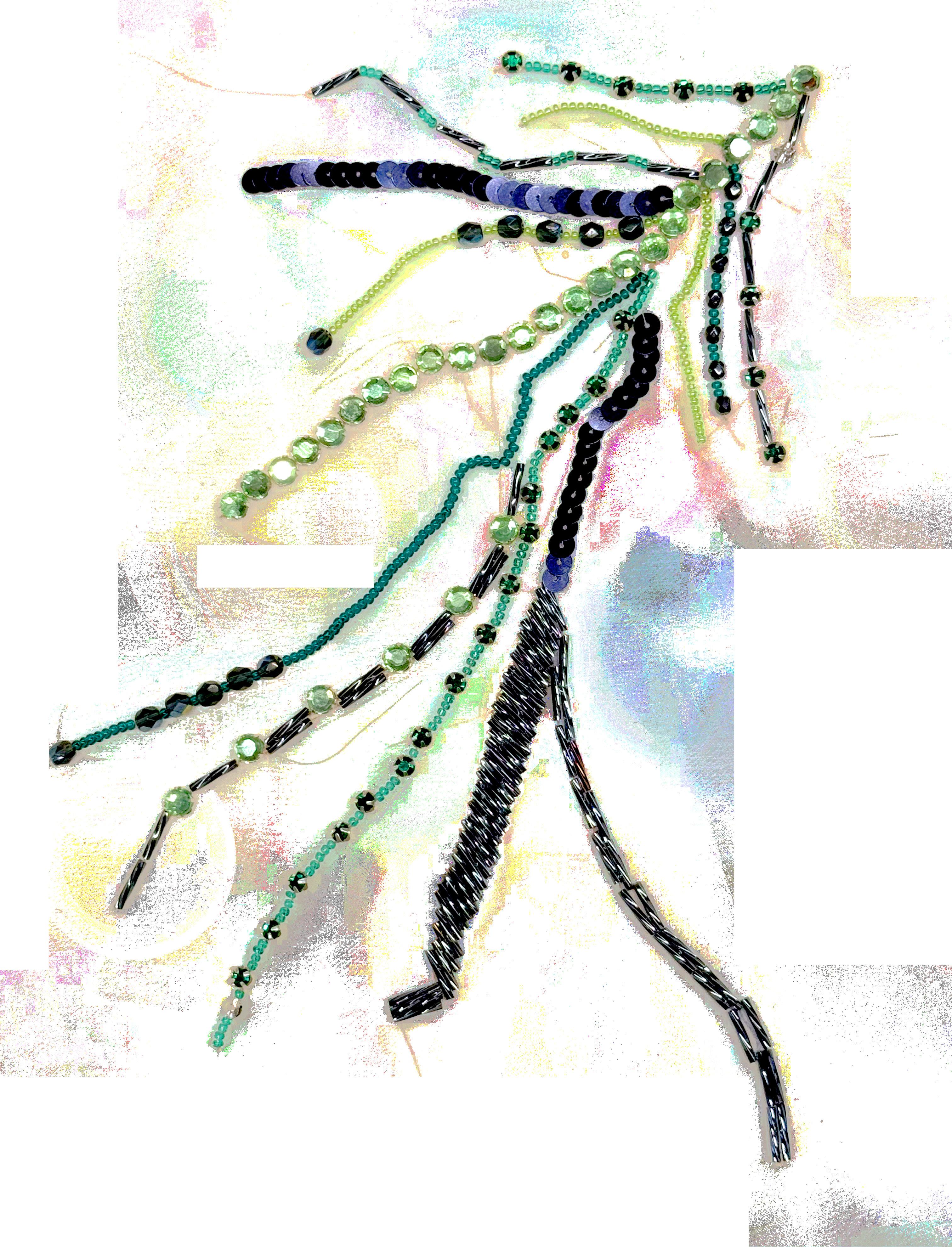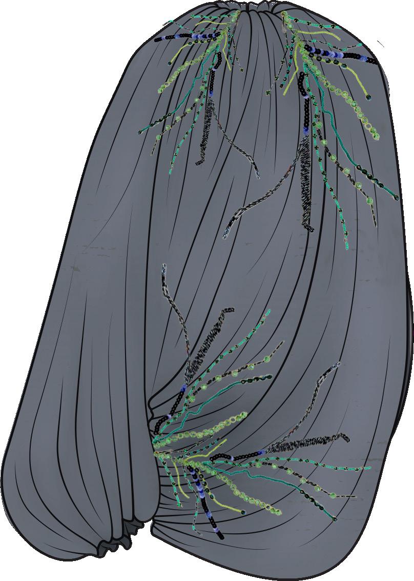 This work explores embroidery through a combination of Lunéville hook techniques used in haute couture and traditional hand embroidery with silk threads. Developed through specialised training in Lyon and Barcelona, the process focuses on creating three-dimensional surfaces by experimenting with texture, shape, and material combinations. The aim is to push embroidery beyond decoration into a more structural and tactile form.