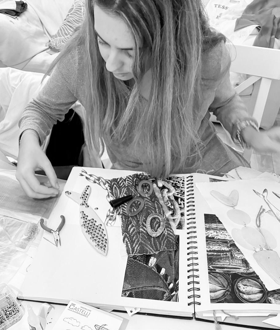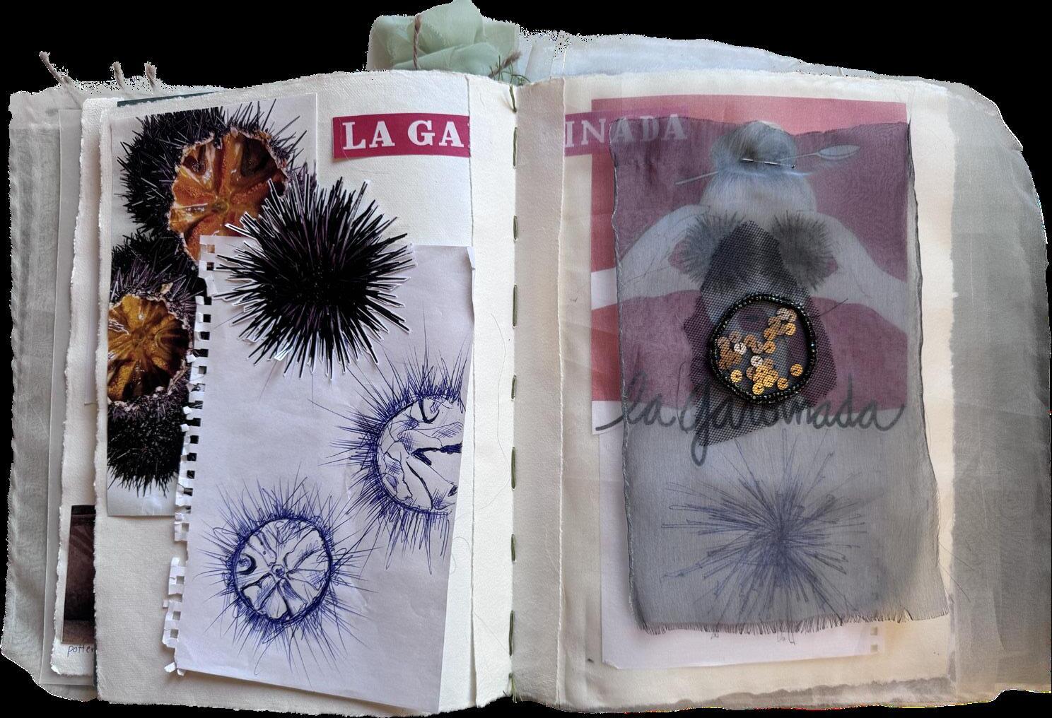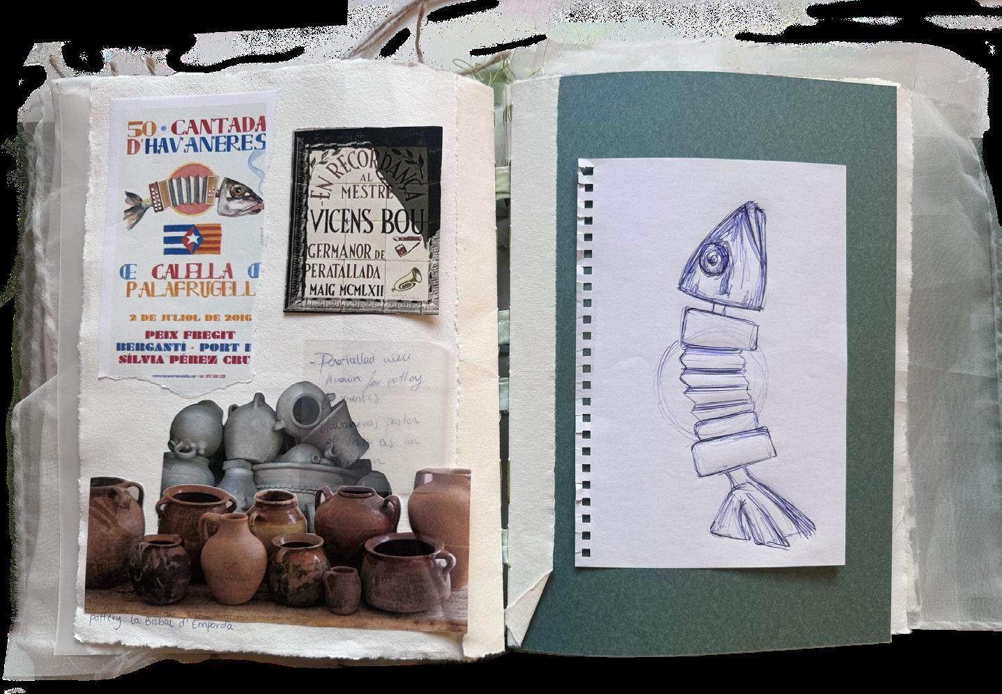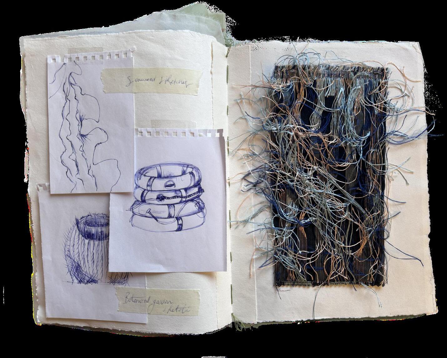 This research book is entirely handcrafted, reflecting the artisanal spirit behind the Sarde collection that I developed during my final year as a fashion student. Each page is made using recycled cotton paper and carefully stitched together by hand. The pages are manually sewn to one another, creating a tactile and organic structure that echoes the importance of craftsmanship throughout the project. This handmade process gives the book a unique character, turning it into a physical extension of the collection and its creative journey.