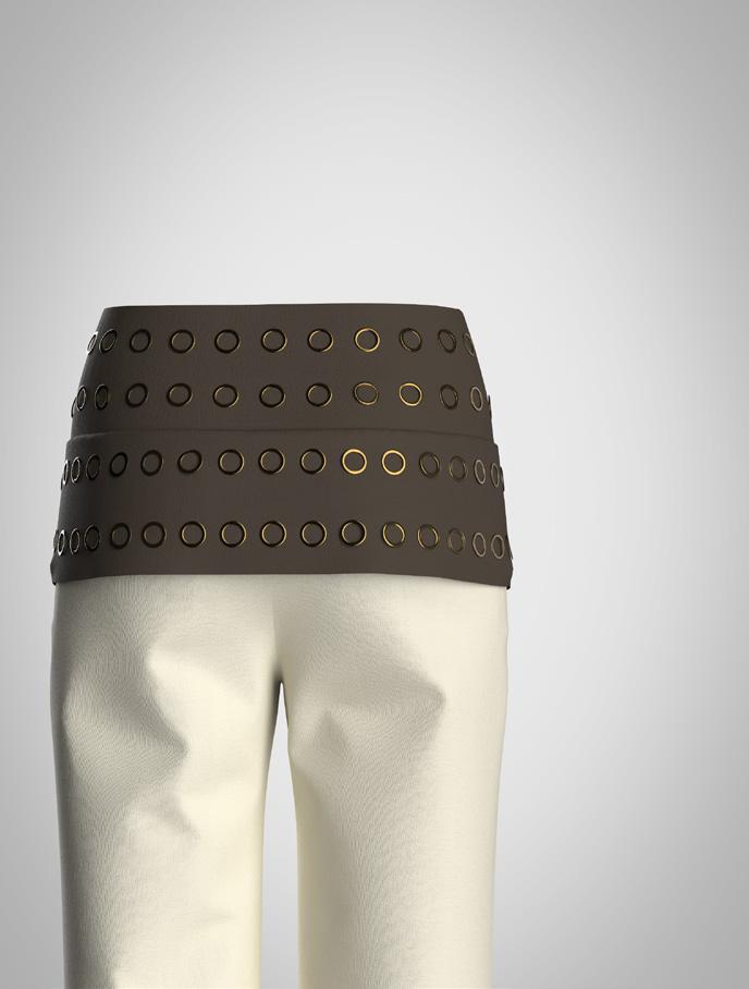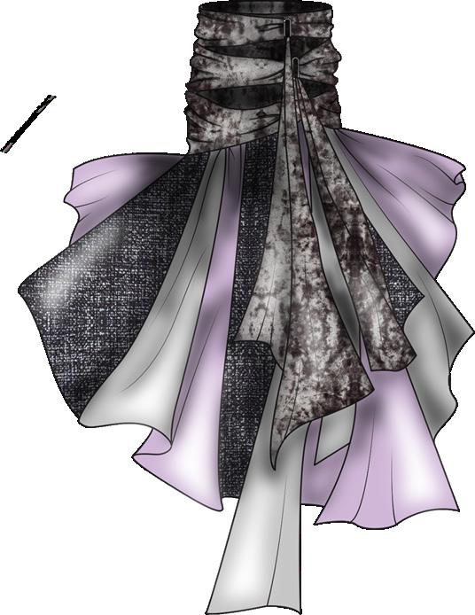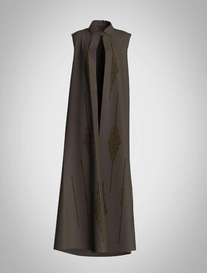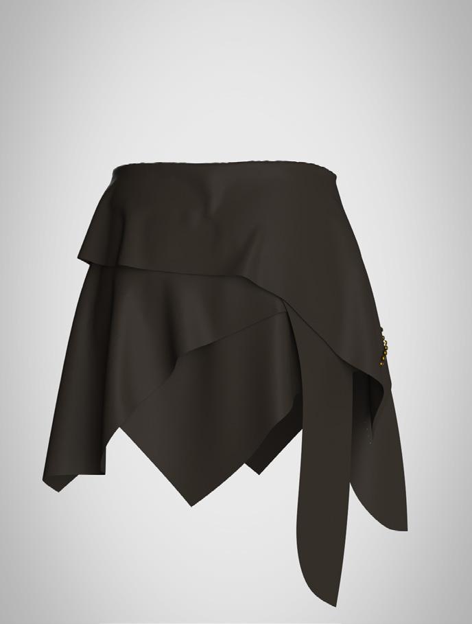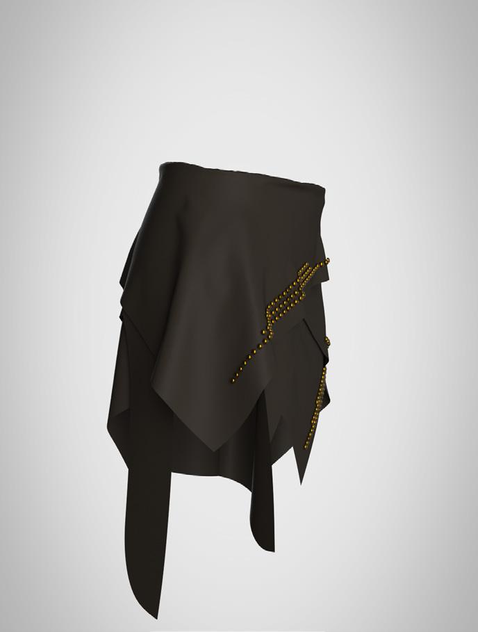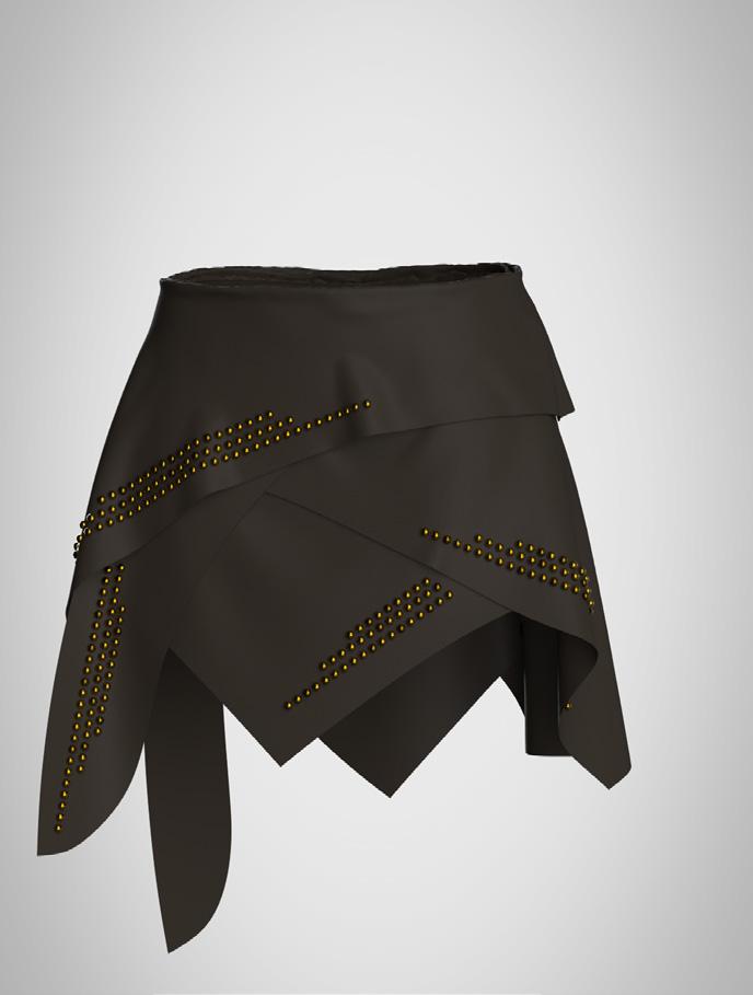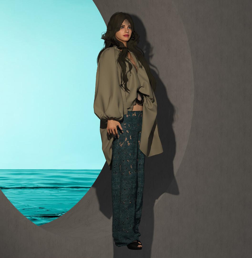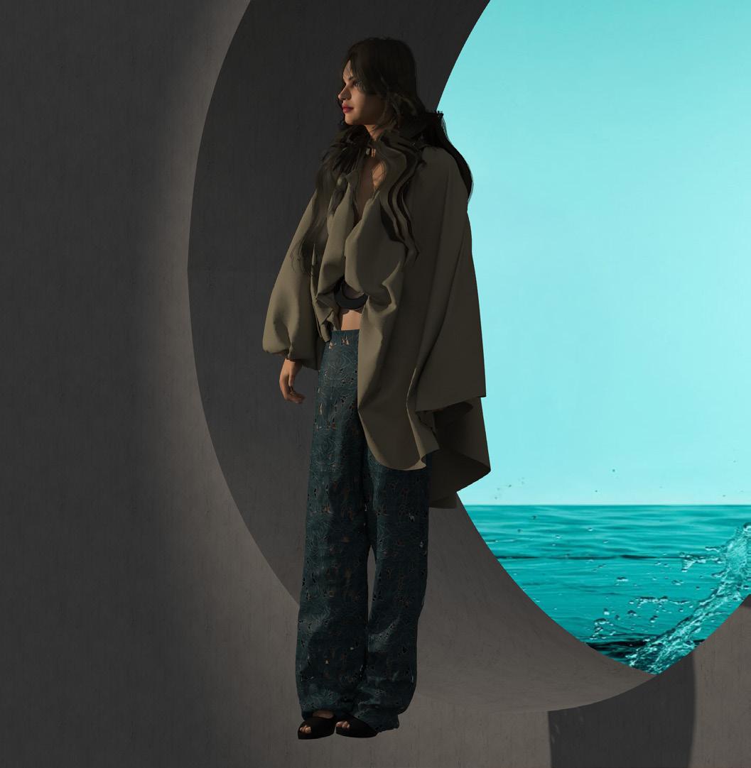 collection to life through of materials and surface elements such as bead eyelets, enhancing the visual garments. Textured fabrics repwere also key, adding depth allowing me to refine deof realism and clarity.