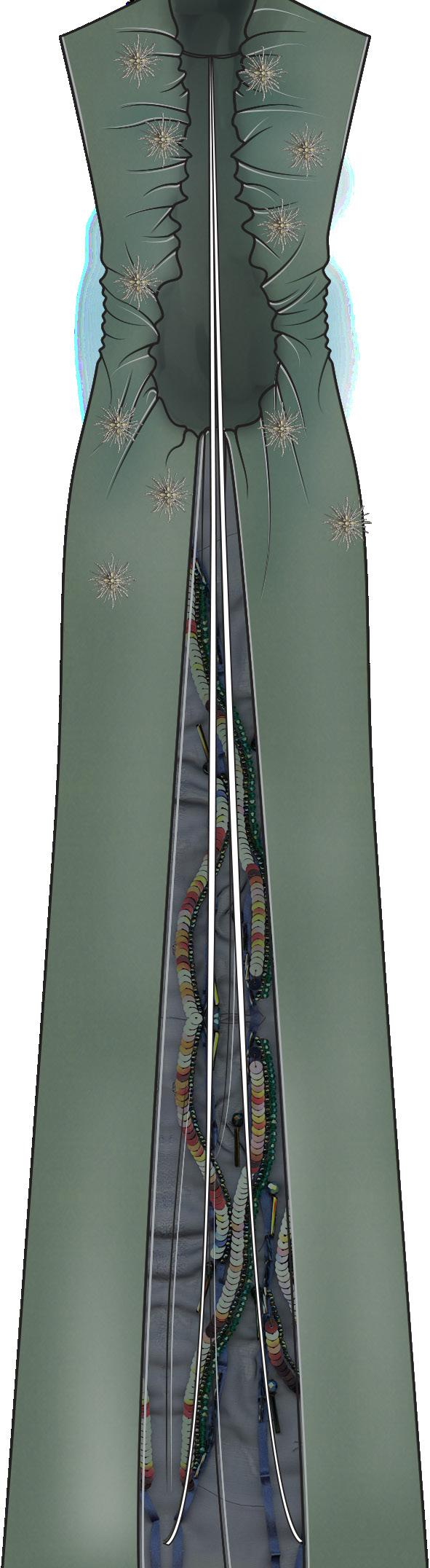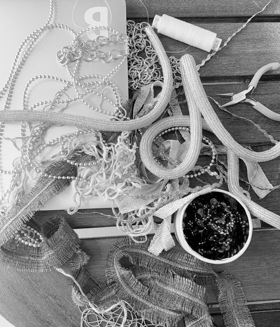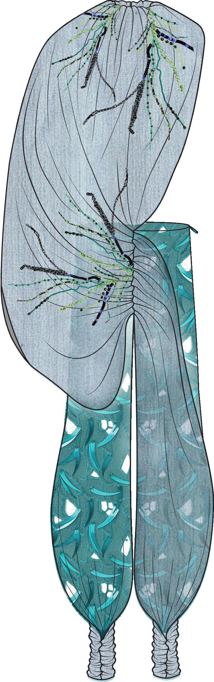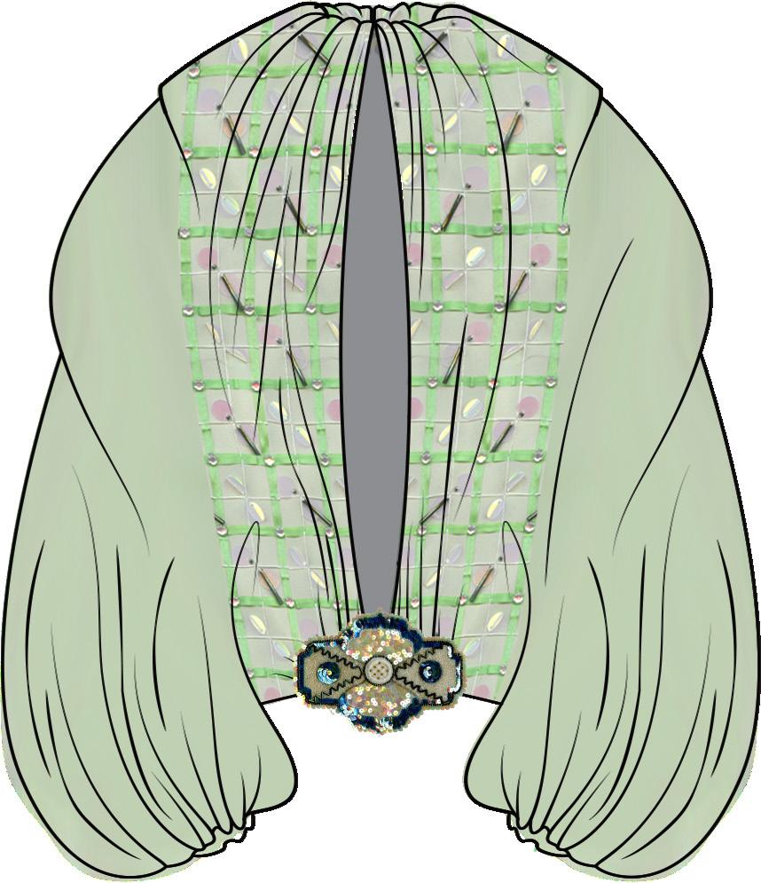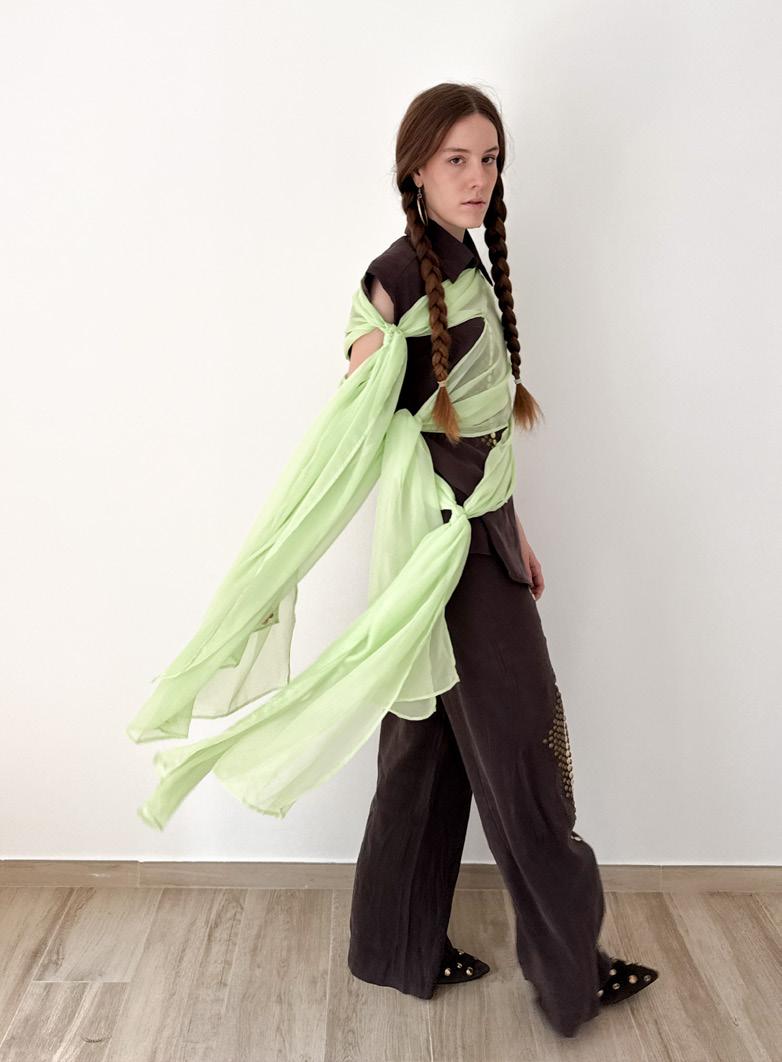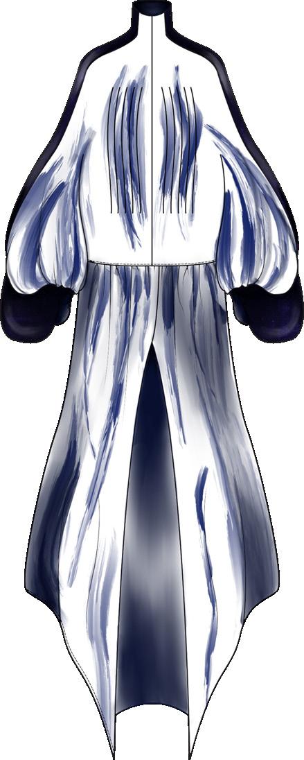 collection to life through of materials and surface elements such as bead eyelets, enhancing the visual garments. Textured fabrics repwere also key, adding depth allowing me to refine deof realism and clarity.