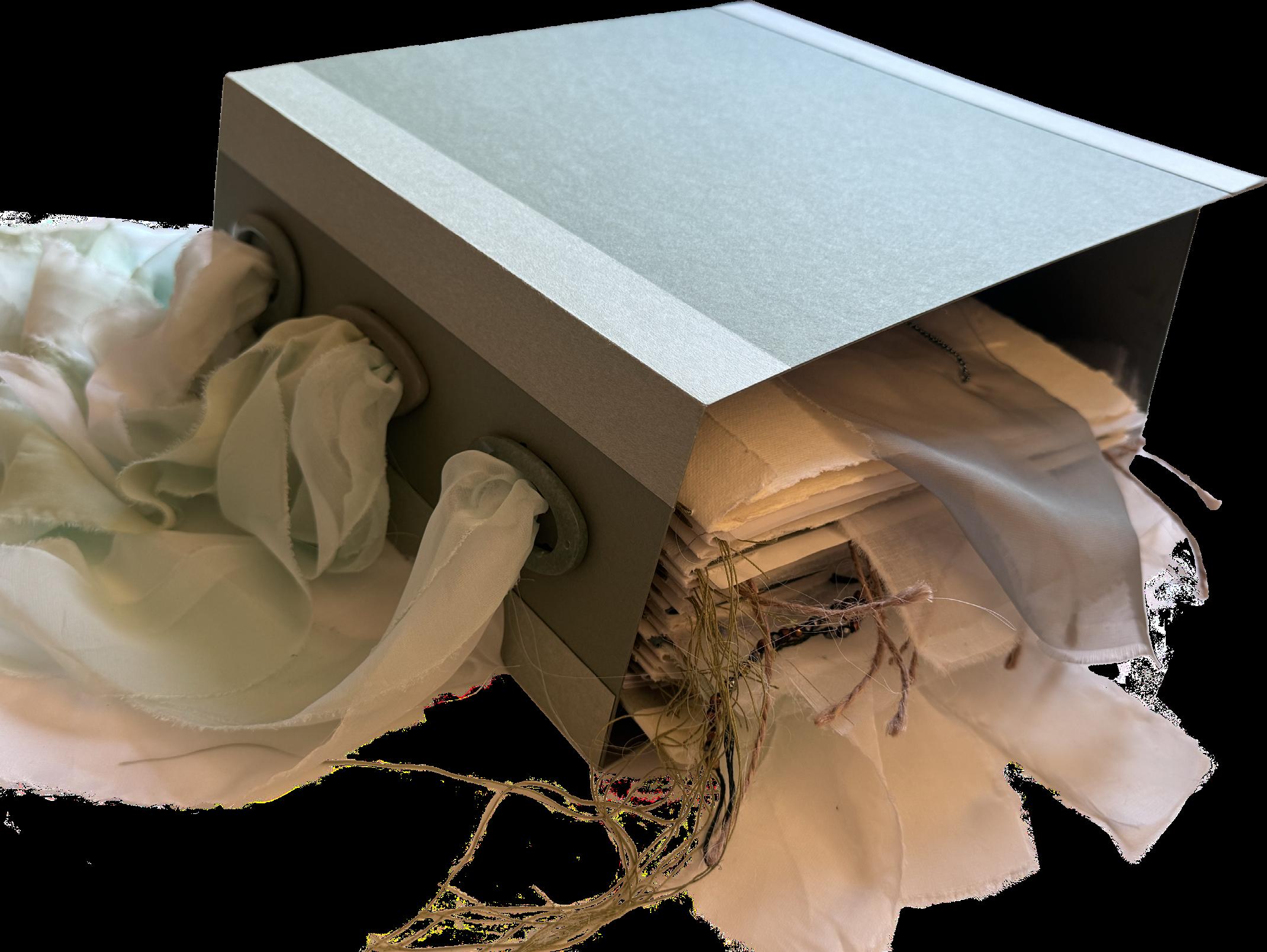 This fabric book is a handcrafted exploration of material experimentation and research. Throughout the project, I experimented with textures and surfaces, translating ideas into tactile forms. The book was entirely handcrafted, from the initial fabric manipulations to the final assembly. It documents my full research process, showing the evolution of material ideas through sketches, images, and samples. Serving as both a visual and tactile archive, it reflects the depth of experimentation and the development of my creative approach.
