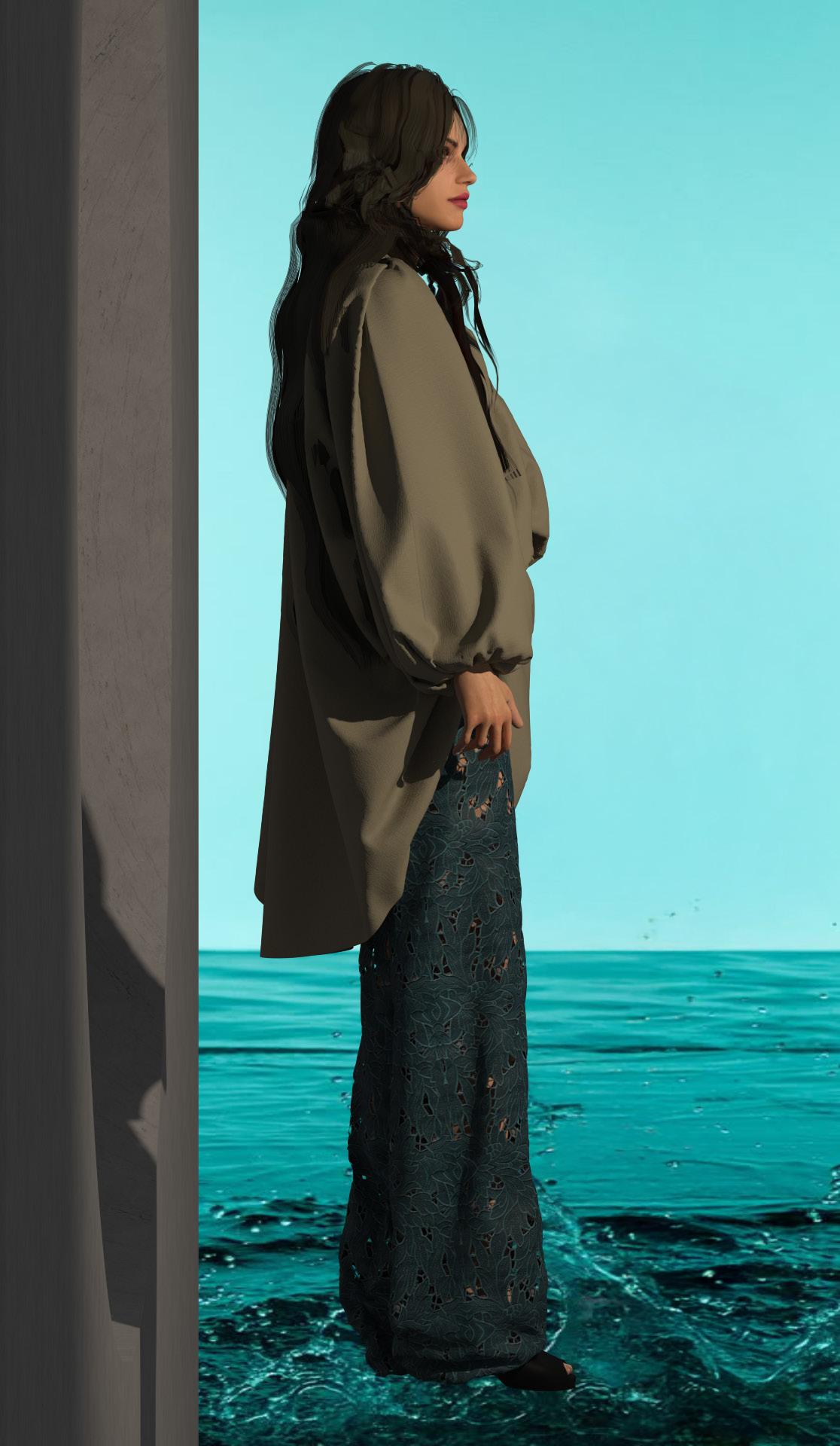 As part of my fashion collection, a series of digital product 3D to visualize the garments contemporary context. me to translate my designs realistic digital representations, hou- ette, materials, and digital environment.