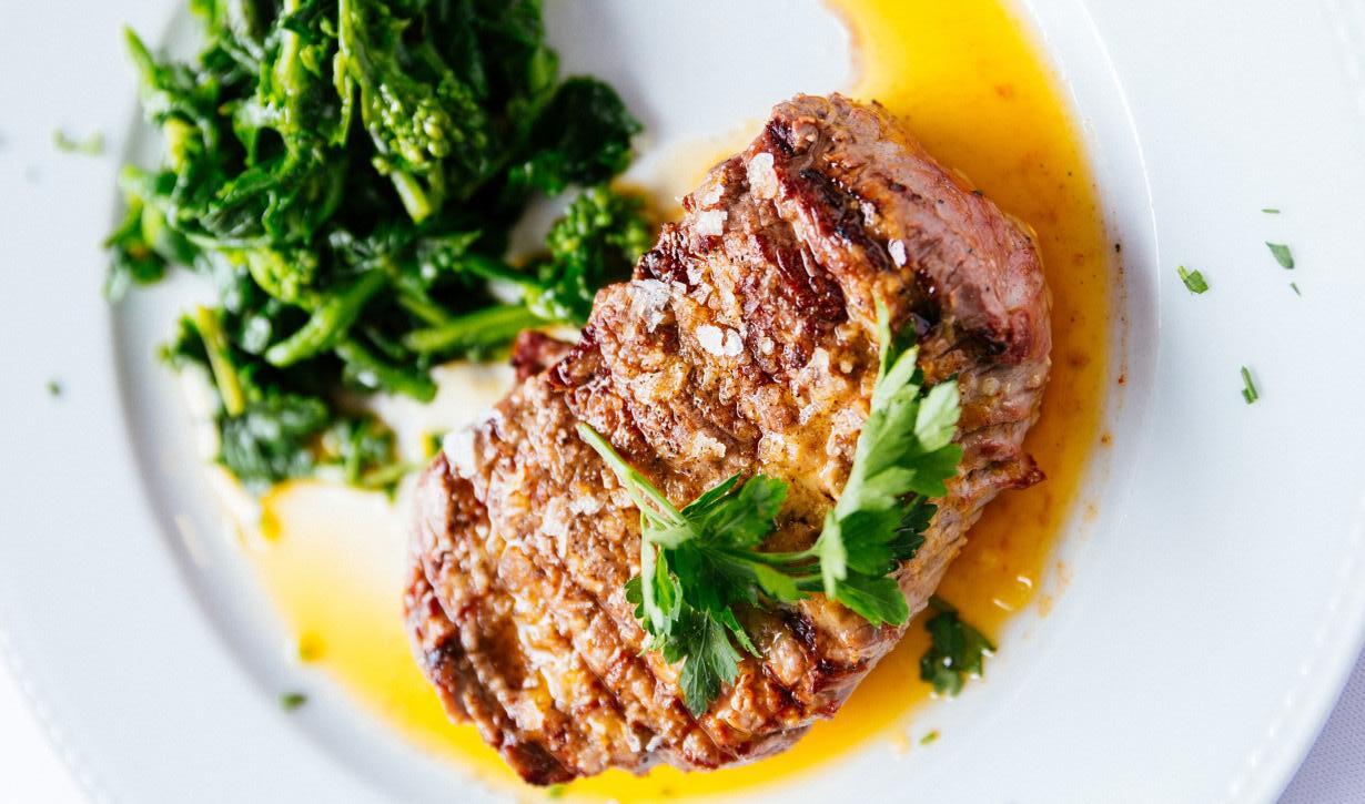 2.) Infuse: Lower the heat and add the butter, garlic, and rosemary. Using a spoon, continuously baste the meat with the melted butter (arroser technique) for 2 minutes.