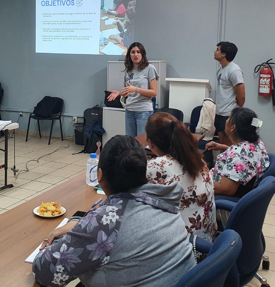 Dentro del PAP de Emprendimientos Sociales, se les compartió a las emprendedoras algunas prácticas de economía social y solidaria sobre finanzas sociales y cómo aplicarlas en sus emprendimientos. De manera tal, que les inspiró a pensarse en términos colectivos y manifestaron la idea de unirse, como una estrategia para reducir costos.