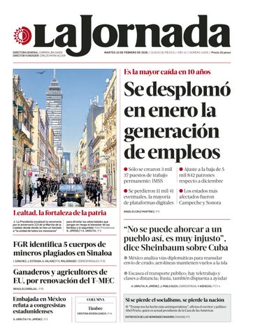 SUPLEMENTO ESPECIAL DE LA JORNADA DIRECTORA GENERAL: CARMEN LIRA SAADE MAYO DE 2019 AÑO 1 - NO 12
