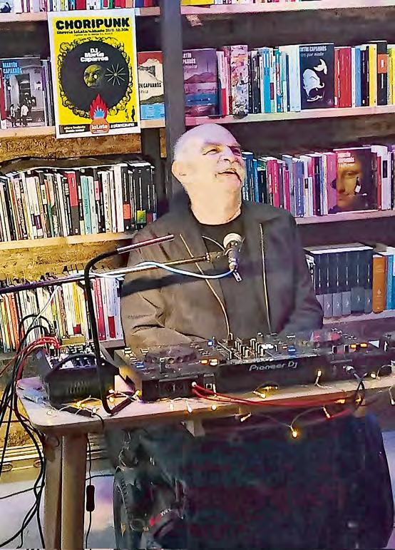 u El escritor argentino presentó su nueva faceta en Lata Peinada, una pequeña librería en Barcelona. Gracias a la inteligencia artificial, audífonos, mezcladores y una computadora creó los temas musicales con algunos de sus textos. El concierto se tituló Choripunk Foto tomada de un video aRmando g. Tejeda, corresPonsal / cultura