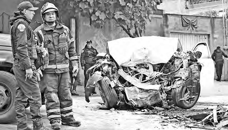 ▲ El choque de un automóvil particular contra un muro de contención en el cruce de avenida Toluca y Zamora, en la colonia Olivar de los Padres de Álvaro Obregón, ocasionó la muerte de una
