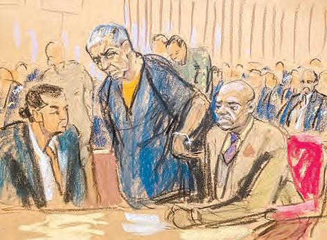 ▲ Los cabecillas Vicente Carrillo Fuentes (izquierda) y Rafael Caro acudieron ayer a la presentación de cargos en un tribunal federal en Brooklyn. Ilustraciones Jane Rosenberg/Artincourt