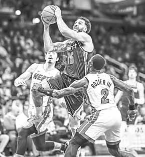 ▲ Con la participación del mexicano Jaime Jáquez Jr. (izquierda), el Heat logró una victoria 119-107 sobre los Wizards de Washington. El tricolor anotó nueve puntos y Terry Rozier III contribuyó con 27 para el segundo triunfo consecutivo de Miami, que se colocó a medio juego de Indiana en la carrera para evitar la fase play-in de la NBA. Foto Ap