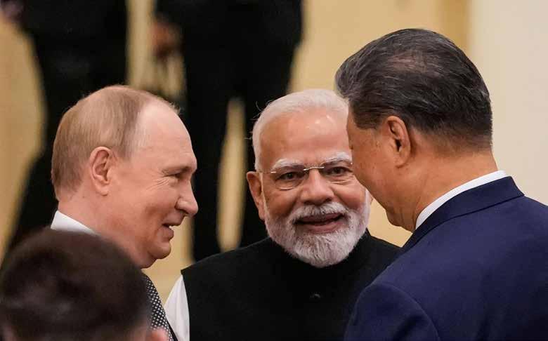 contrapeso de la OtAN. Xi se reunió ayer con su par ruso, Vladimir putin, y el primer ministro indio, Narendra Modi, con quienes abordó la guerra comercial de trump. En tanto, pekín conmemorará el miércoles 80 años de su victoria en la segunda guerra sino-japonesa. Foto Ap agencias y J. xantomiLa, EnVIADA / P 22 y 26