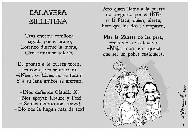 ● Rescinde la CFE contrato, ya que el domicilio difiere al del permiso ● La firma ibérica tramitó en 2015 la construcción de la central eólica en SLP ● Comenzó a operar sin realizar los cambios que por ley requería ● Arguyó que fue ‘‘gran inversión’’ y que la obra estaba concluida REDACCIÓN / P 27 Operativo de seguridad en CDMX por el Día de Muertos La SSC desplegó 3 mil 246 policías y 649 vehículos para vigilar los 120 panteones y explanadas de alcaldías por las festividades. En la imagen, taller en Oaxaca de fabricación de calaveritas. Foto Jorge A. Pérez. LAURA GÓMEZ / P 37JORGE A. PÉREZ Y REDACCIÓN / P 11 La justicia llegará: Adán López SG: la denuncia contra Calderón, en la Corte de La Haya ● El ex presidente está incluido en una querella en ese tribunal por la represión en Oaxaca 7502228390008 Rayuela Vaya epopeya la de los migrantes. No hay barrera que los detenga. Hasta la bandera de su patria enarbolan para enfrentar a la Patrulla Fronteriza. www.jornada.com.mx OPINIÓN José Blanco 23 Víctor Manuel Toledo 23 Luis Hernández Navarro 24 Pedro Salmerón Sanginés 24 COLUMNAS Dinero Enrique Galván Ochoa 16 Astillero Julio Hernández López 18 Negocios y Empresas Miguel Pineda 27 México SA Carlos Fernández-Vega 28 Ciudad Perdida Miguel Ángel Velázquez 38 MARTES 1º DE NOVIEMBRE DE 2022 DIRECTORA GENERAL: CARMEN LIRA SAADE // DIRECTOR FUNDADOR: CARLOS PAYÁN VELVER