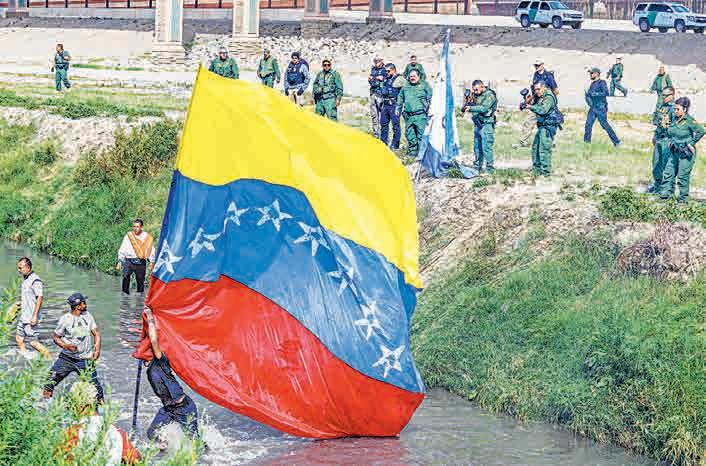 Disparan balas de goma contra migrantes venezolanos ▲ Agentes de la Patrulla Fronteriza adscritos a El Paso, Texas, reprimieron una movilización de más de 100 sudamericanos en el bordo del río Bravo, a la altura de Ciudad Juárez, Chihuahua, quienes exigían su derecho de asilo. Los uniformados intentaron arrestar a los inconformes y dispararon balas de goma, con el pretexto de que les arrojaron piedras. El reporte fue de un herido y la detención de Roberto Márquez, pintor zacatecano avecindado en Estados Unidos, convocante de la manifestación. Foto Afp. CORRESPONSALES / P 14