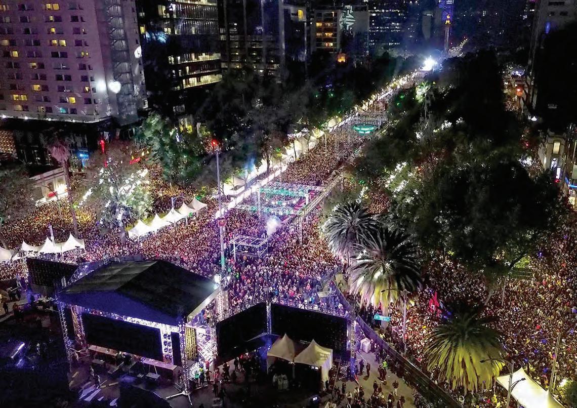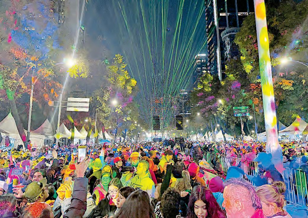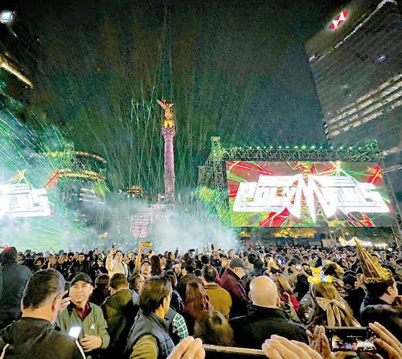 2025. El impresionante espectáculo de luz y sonido, al que no faltaron las bailarinas en el escenario, provocó la euforia de la multitud distribuida desde la Glorieta del Ahuehuete hasta el Ángel de la Independencia. Aunque