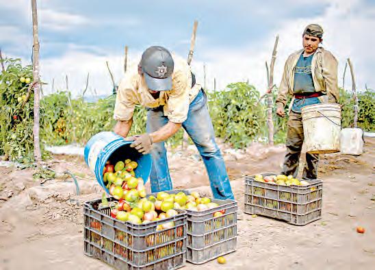 ▲ Aguacates, jitomates, berries y pimientos son algunos de los productos del campo que tienen mayor demanda en el extranjero y México exporta con millonarias ganacias para firmas trasnacionales. Sobre estas líneas, campesinos preparan el campo para sembrar frijol. Abajo, la pizca de jitomates en Culiacán. Fotos Alfredo Valadez y Cuartoscuro