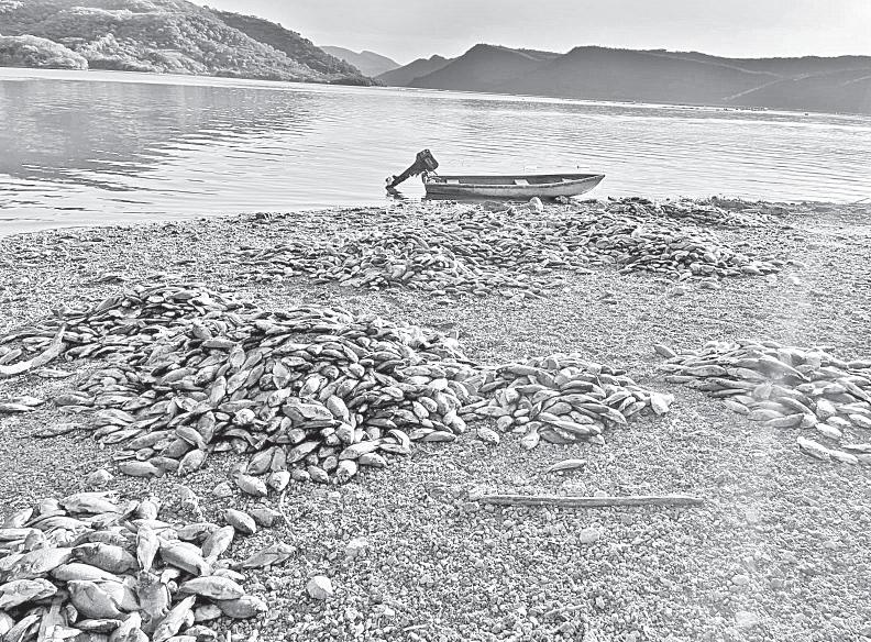 ▲ Pescadores de Cutzamala de Pinzón denunciaron que unas 100 toneladas de mojarras tilapias murieron en la presa el Gallo a causa de la