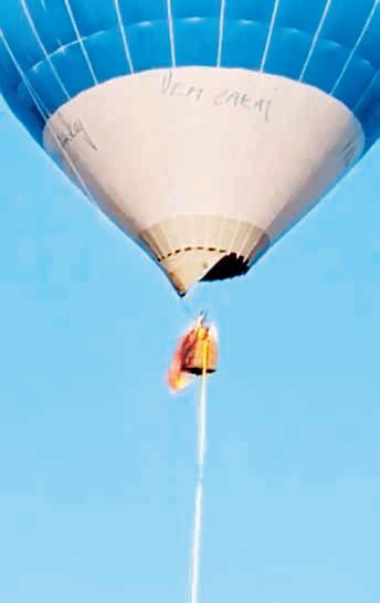 ▲ De acuerdo con testigos y autoridades de Teotihuacan, ayer a las 8:40 de la mañana, el globo con matrícula S50LB empezó a incendiarse en la canastilla por fallas en la conexión de gas cuando