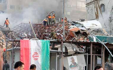 s búsqueda de sobrevivientes en el anexo de la embajada iraní en siria. se confirmó la muerte de dos altos mandos militares. Foto afp